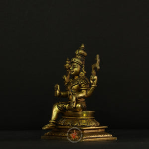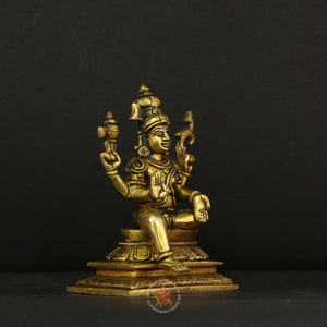 Expertly crafted from high-quality brass, this idol captures the divine couple seated together in a posture of blessing, exuding a serene and majestic aura. Lord Shiva, with his calm yet powerful presence, and Goddess Parvathi, with her nurturing grace, together embody the harmonious union of divine energy, bringing blessings of peace, prosperity, and spiritual enlightenment to your space.