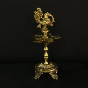 The beauty of tradition and spiritual symbolism with this exquisitely crafted Brass Standing Annam Lamp. Featuring the elegant Annam bird (swan) perched gracefully atop a traditional deepam, this lamp symbolizes purity, prosperity, and divine grace. The Annam is revered in Indian culture as a symbol of wisdom and spiritual discernment, making this lamp a perfect addition to your pooja room, temple space, or festive decor.