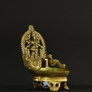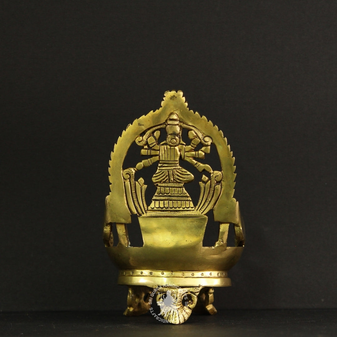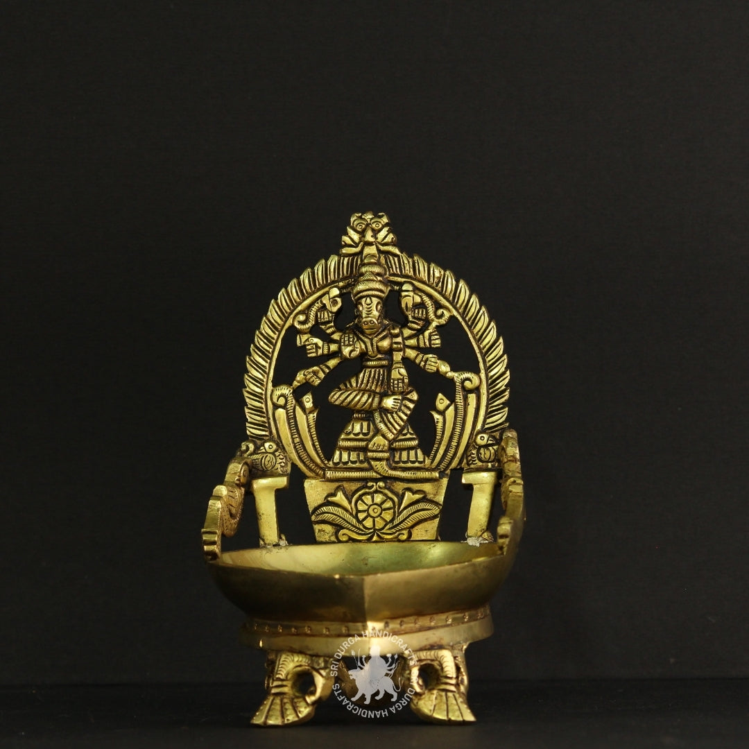 lluminate your sacred space with the Brass Varagi Brass Deep, a symbol of divine power, courage, and protection. This exquisitely crafted deepam features the fierce and compassionate form of Goddess Varagi, one of the Sapta Matrikas, known for her strength to dispel negativity and bring spiritual fortification.